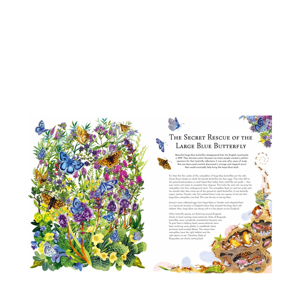 Discover the extraordinary ways nature has come back from the brink in this collection of 20 environmental success stories from around the world, written by Dr Helen Scales and beautifully illustrated by Good Wives and Warriors. From humpback whale populations thriving again in the freezing seas of Alaska and the recovery of kiwi populations in New Zealand, to the setting up of tiger sanctuaries and reserves in India and return of elephant seals from 'extinction', this book plants a message of hope and shows children that positive change is possible.