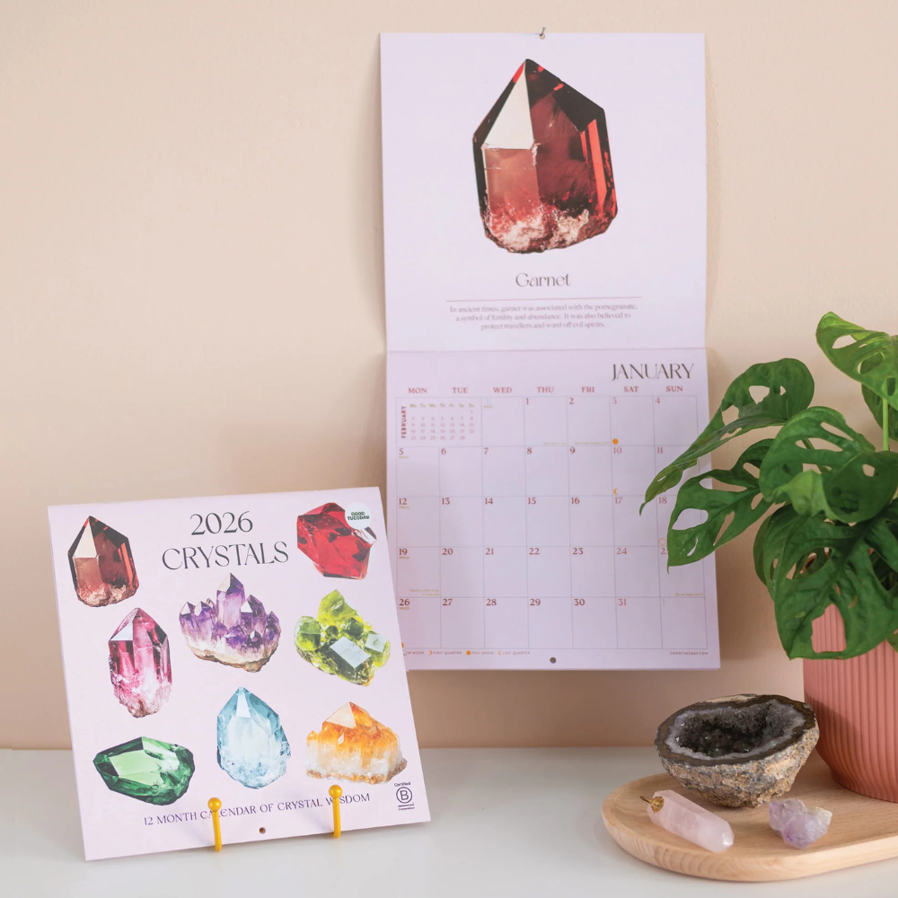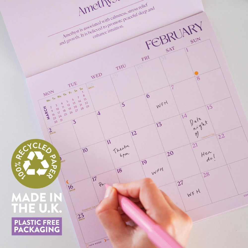 This compact size 2026 wall calendar journeys through twelve striking birthstones - from amethyst to citrine - with each month exploring a different crystal’s meaning and symbolism. Bold illustrations meet a clean, minimal grid for plans, birthdays and notes.
