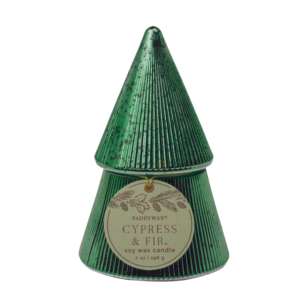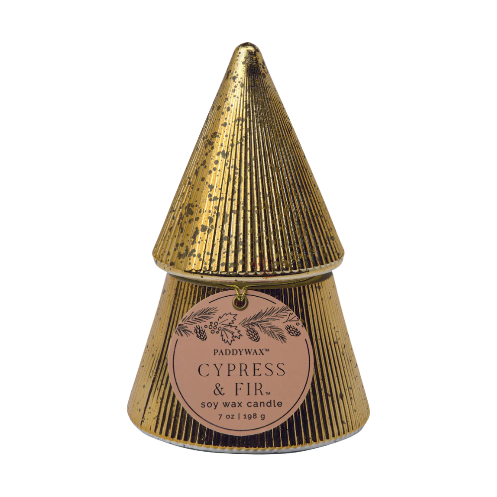Gold Stacked Tree Candle - Cyrpress & Fir