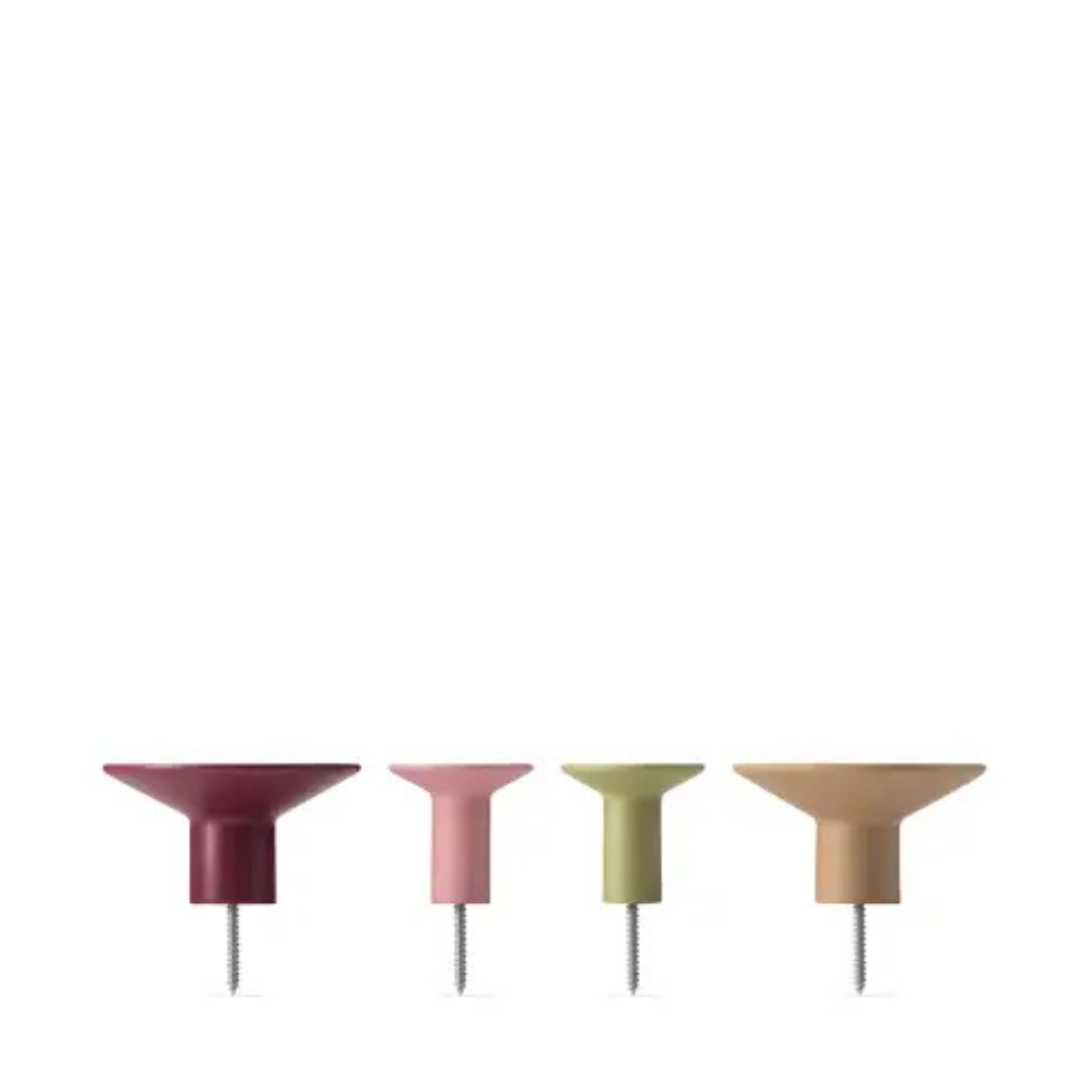 FEATURES: - Set of 4 hooks (2 small + 2 large) - Includes M4 mounting screws - Suitable for coats, bags, towels and more - Simple wipe clean maintenance - Award-winning design house (Red Dot, German Design Award) Material: Polyresin Small hooks: diameter 4.7cm, depth 4.7cm Large hooks: diameter 8.3cm, depth 4.7cm