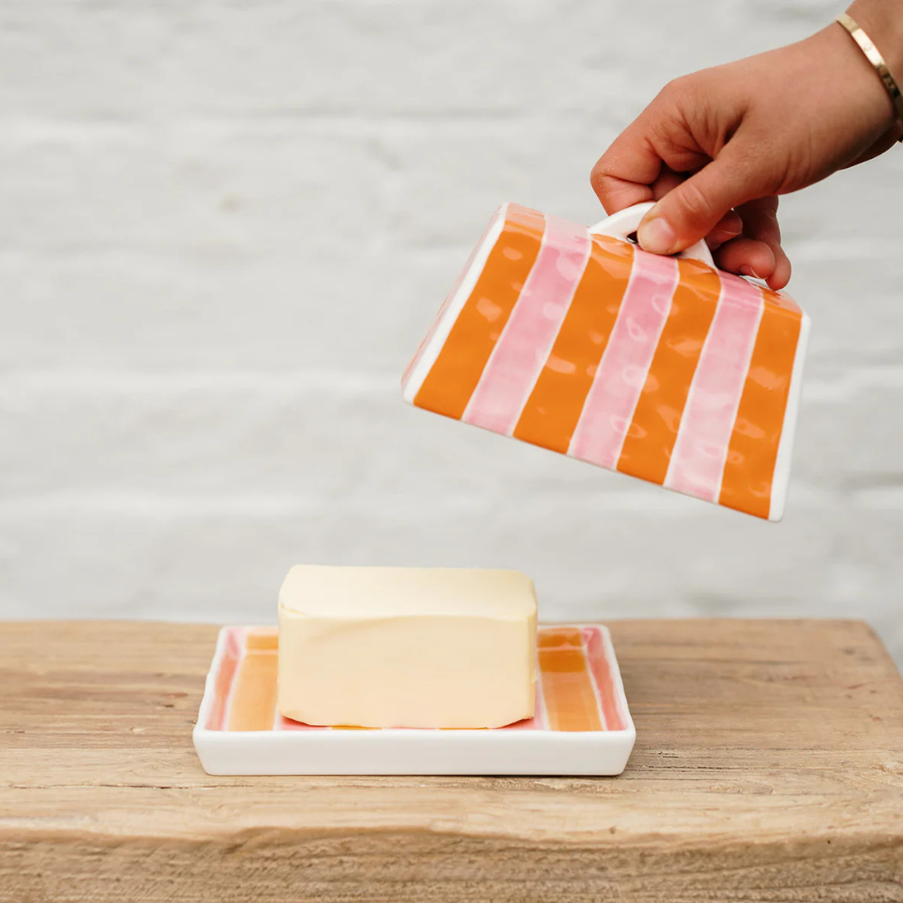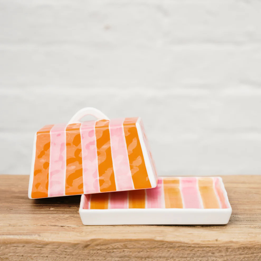 Large Butter Dish - Orange Pink Stripe