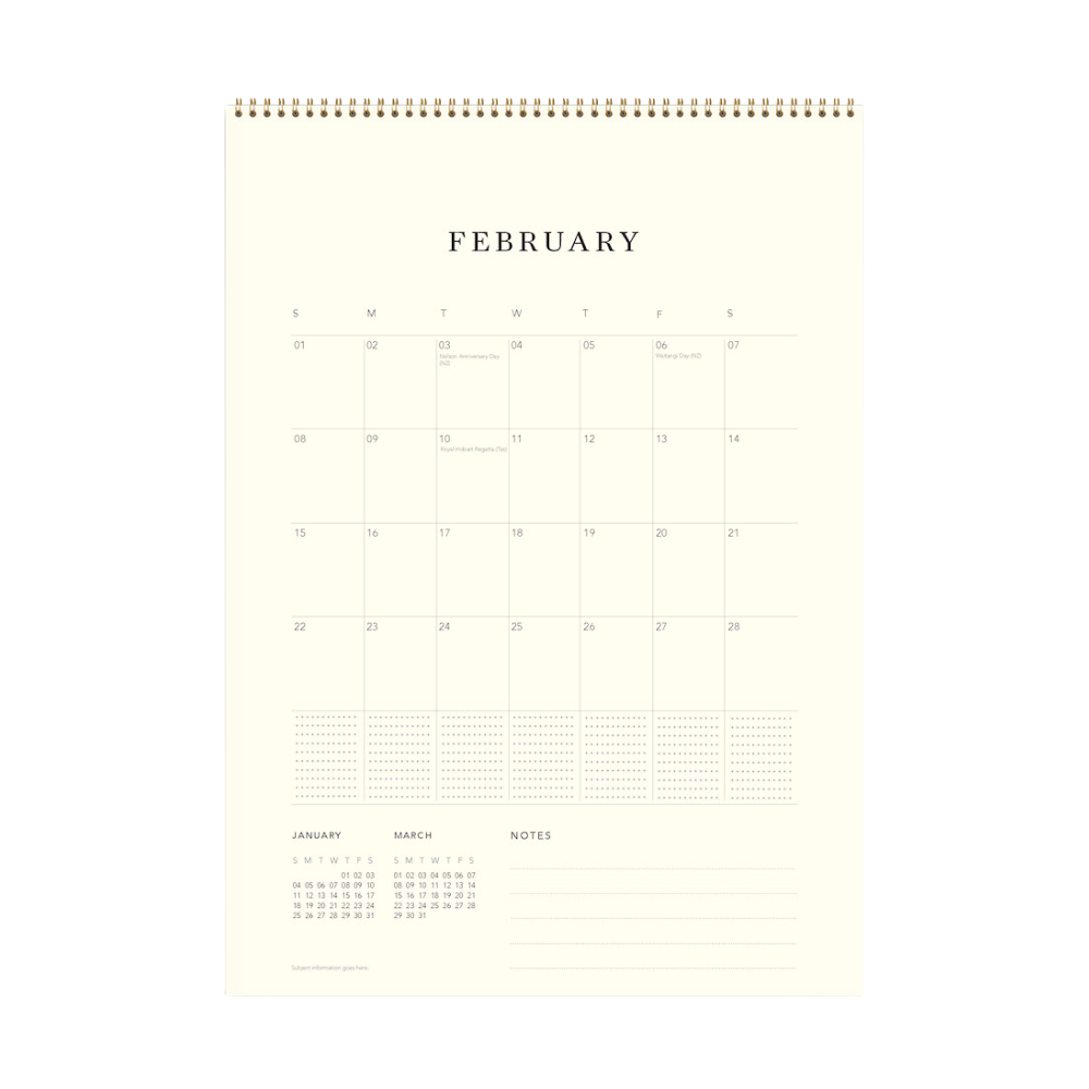 Printed in Australia on premium textured antique-white paper, the 2026 Wall Calendar embodies Vevoke’s commitment to quality and sustainability. The elegant brass wire binding allows each page to turn smoothly while maintaining a refined, gallery-like presentation. Designed with both function and aesthetic in mind, its double-hung layout displays each artwork above the monthly calendar for effortless visibility and year-round enjoyment.