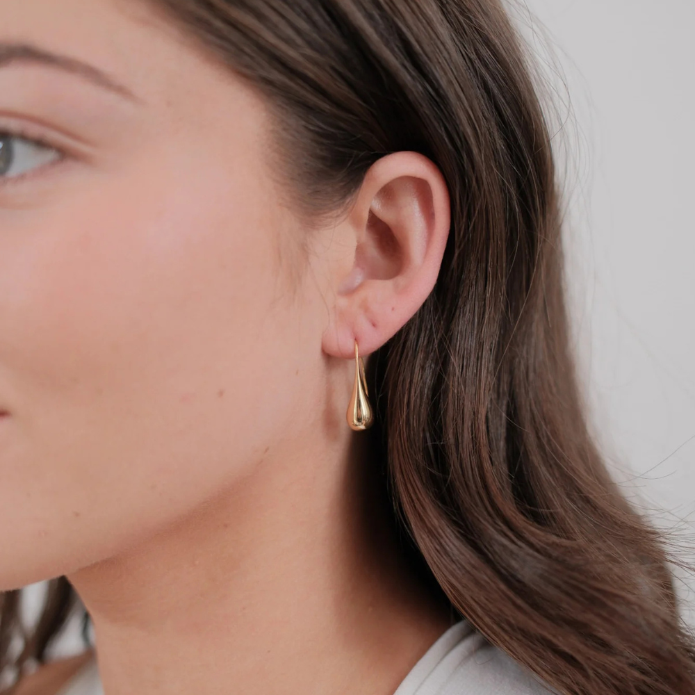 Sleek and sculptural, the Nova Earring features a fluid teardrop silhouette with a polished gold finish. Effortlessly elegant, this design makes a modern statement while remaining lightweight and comfortable for all-day wear. Perfect for elevating everyday outfits or adding a sophisticated touch to evening looks.