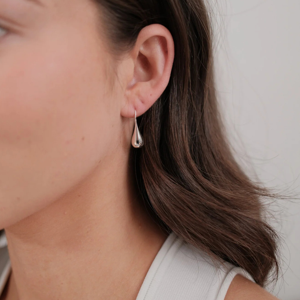 Sleek and sculptural, the Nova Earring features a fluid teardrop silhouette with a polished silver finish. Effortlessly elegant, this design makes a modern statement while remaining lightweight and comfortable for all-day wear. Perfect for elevating everyday outfits or adding a sophisticated touch to evening looks.